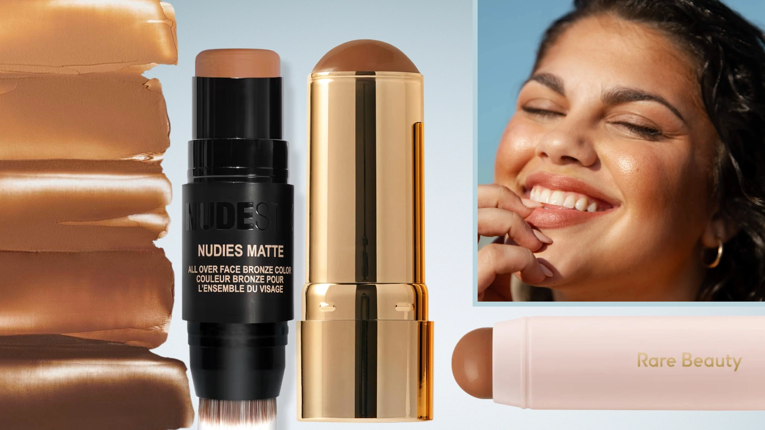 - The Best Cream Bronzer Overall: Rare Beauty Warm Wishes Effortless Bronzer Sticks